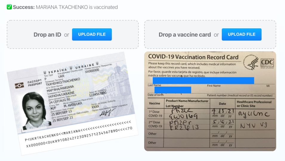 Help stop the spread of Covid-19 by automatically and accurately matching a vaccine card with an ID, driver license, or passport.