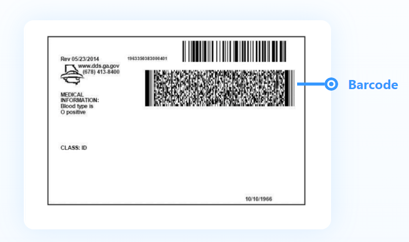 With Base64.ai, our barcode AI can process PDF417 barcodes and QR codes in a fast and efficient way to extract all key-value pairs. Simply upload a photo of your barcodes, validate your data in seconds, and send your results to your database. Our barcode AI recognizes barcodes on IDs, driver’s licenses, passports, visas, vehicle registrations, checks, and all other documents with barcodes.
