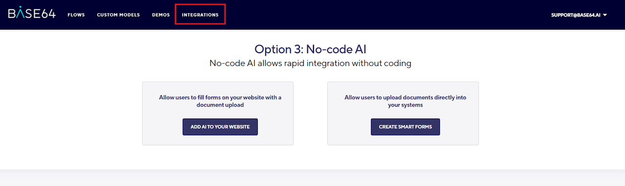 Base64.ai’s No-Code Integration enables you to automate document processing without writing any code. Quickly collect documents, extract data, and route results to your systems using simple configuration steps.