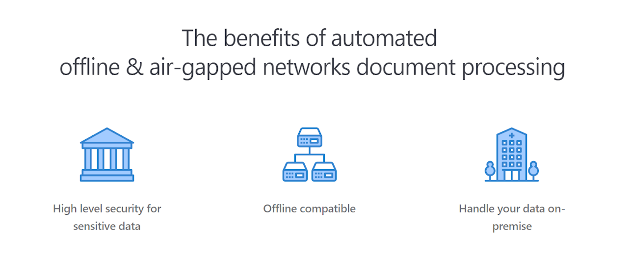Base64.ai offers offline, air-gapped, and onpremises solutions without an Internet connection. For documents and countries that may have compliance requirements, we provide a containerized application without significant changes to your current processes. Any software updates will happen periodically at your discretion.