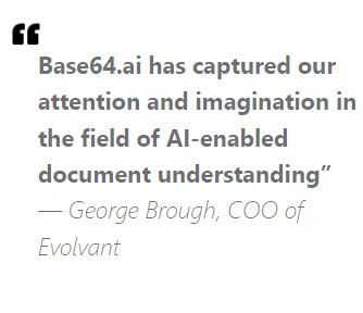 Base64.ai has captured our attention and imagination in the field of AI-enabled document understanding”— George Brough, COO of Evolvant