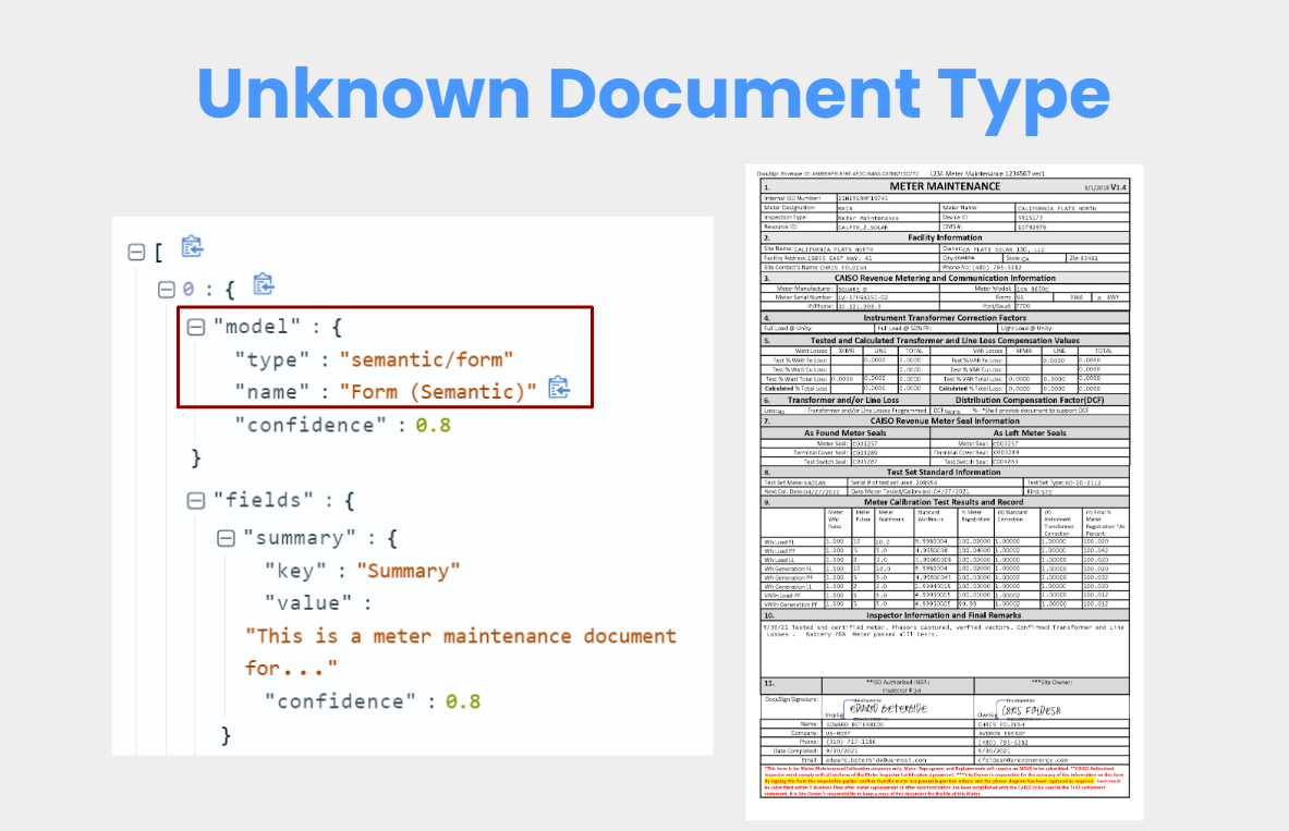 With Semantic AI, we can extract relevant information from any document, even ones we have not seen before, classify it, summarize content, extract key value pairs & tables, which are available in JSON response.